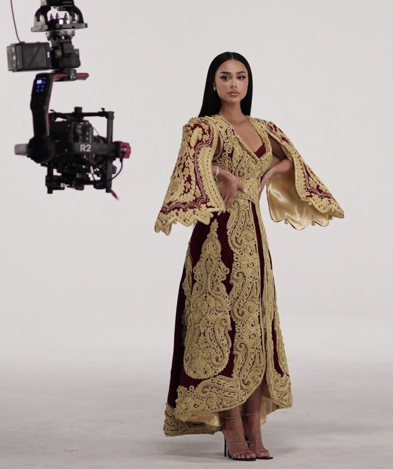 Kostumi që Egli Tako ka zgjedhur të veshë është një interpretim i sofistikuar i veshjeve tradicionale shqiptare, i punuar me mjeshtëri të jashtëzakonshme.