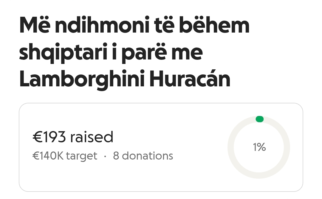 Një nga figurat më të komentuara në rrjetet sociale, Kozaku, ka ndërmarrë një nismë të pazakontë. Ai ka hapur një GoFundMe me synimin për të mbledhur plot 140 mijë euro, për të blerë një Lamborghini Huracán 2016.
