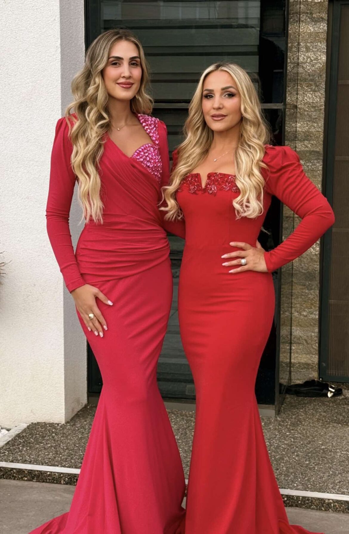 Të dyja kanë tërhequr vëmendjen me paraqitjen elegante, duke u kombinuar me veshje në ngjyrë të kuqe.