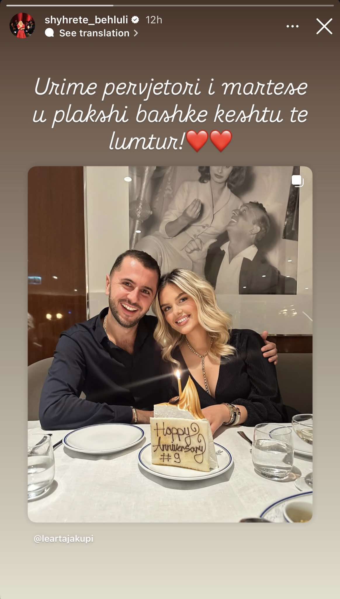 Në këtë rast të veçantë, edhe këngëtarja Shyhrete Behluli ka uruar publikisht çiftin, duke i drejtuar fjalë të ngrohta.