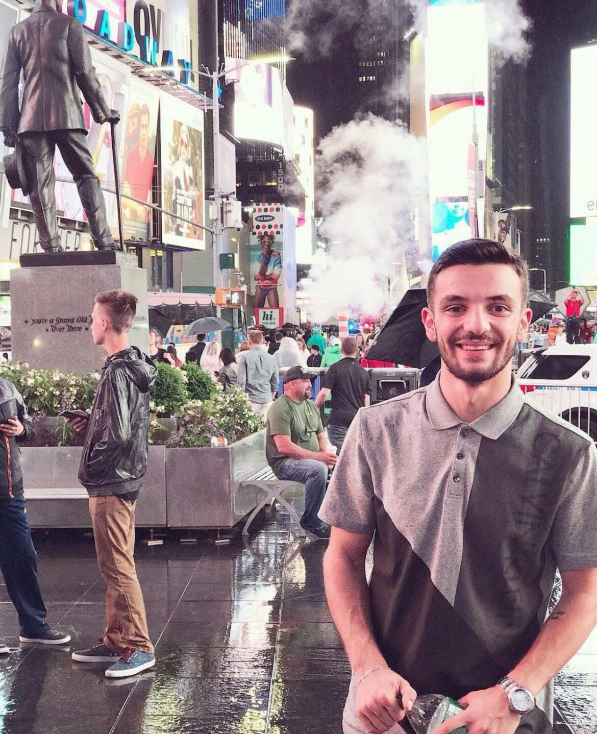 Kur erdhi darka me disa prej kolegëve, vendosëm të vizitonim Times Square-in e famshëm. Shkova në hotel, u lava dhe vesha direkt bluzën Calvin, dhe u shkrep kjo foto.