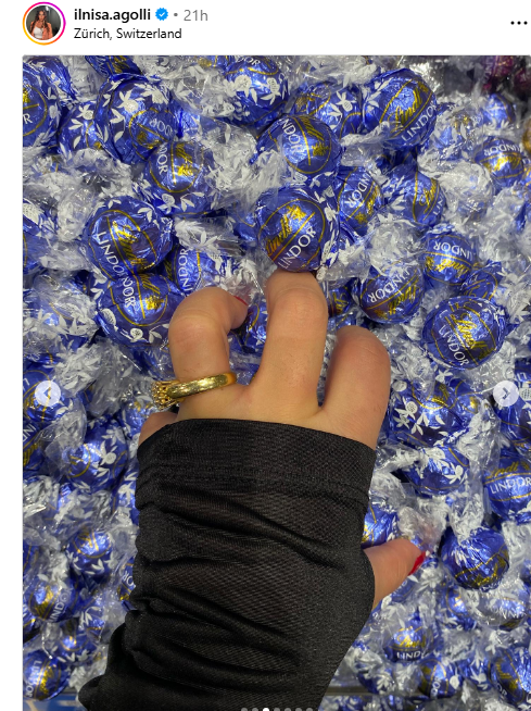 Së fundmi, Ilnisa ka ndarë një fotografi nga Zvicra, ku një detaj i vogël ka ndezur kuriozitetin e ndjekësve – një unazë ari në gishtin e fejesës.