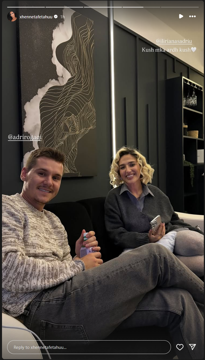 Në rrjete sociale, ajo ka treguar se për vizitë i kanë shkuar Iliriana dhe Adri teksa ky i fundit shihet teksa këndon në një video të ndarë nga Xheneta.
