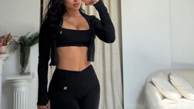 Me një foto, ajo shfaqet me një veshje që thekson belin e hollë dhe linjat trupore.