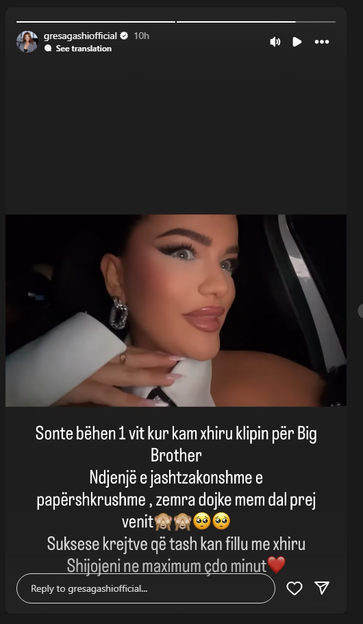 Me një postim në Instastory ndau momentin kur bëhej gati të futej në shtëpinë e famshme, shkruan Indeksonline.