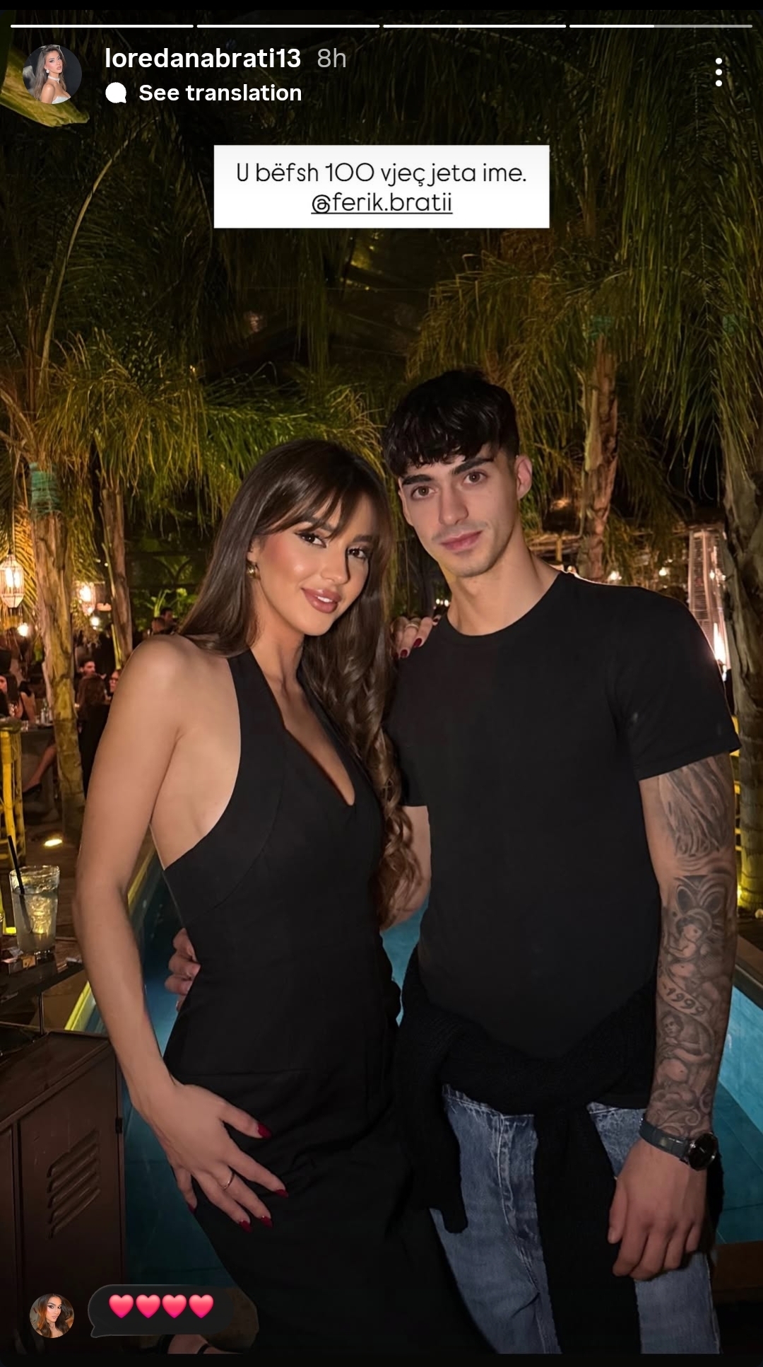 Bashkëngjitur fotos, ish-konkurrentja e njohur ka shkruar një urim të përzemërt: “U bëfsh 100 vjeç jeta ime. @ferik.bratiii”, duke i shprehur kështu dashurinë vëllait të saj.