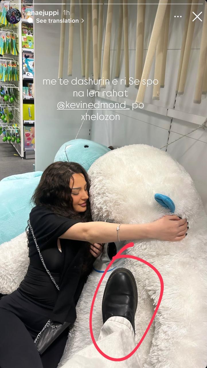 Në një foto të postuar në Instastory, ajo shihet duke përqafuar një arush gjigant pelushi, ndërsa krahas saj ka shkruar me humor: