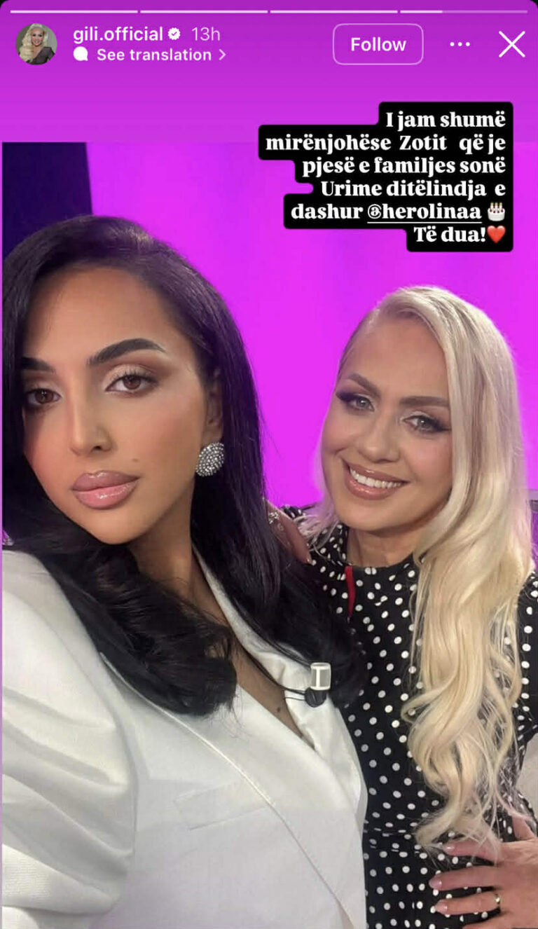 Këngëtarja e njohur Gili ka ndarë pak më parë një urim të veçantë për nusen e djalit të saj, Herolinën, e cila po feston ditëlindjen.