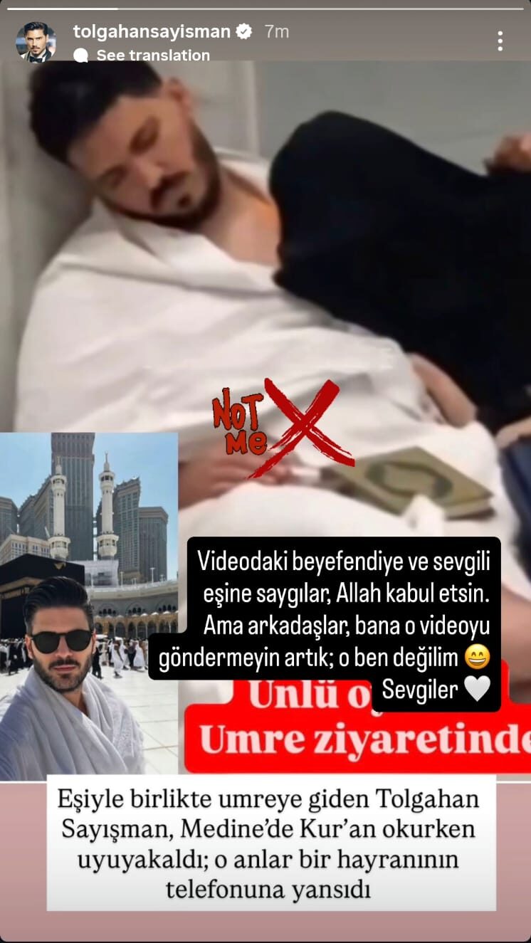 Pamjet u shpërndanë me shpejtësi të madhe në mediat turke dhe ato online, duke shoqëruar artikuj që pretendonin se “Tolgähan Sayışman, gjatë vizitës në Umre me bashkëshorten e tij, u kap nga fansat teksa lexonte Kuranin dhe më pas e zuri gjumi”.