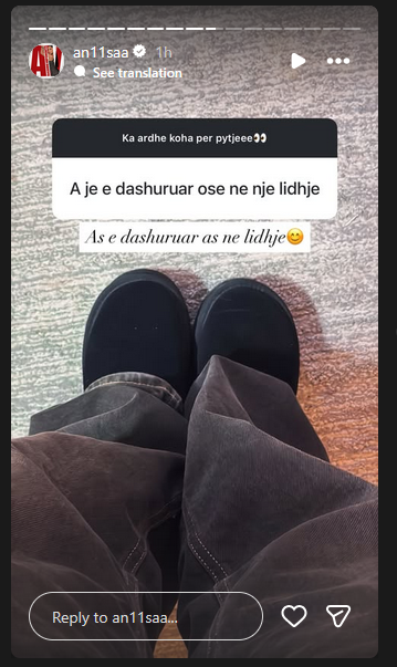 Anisa iu përgjigj sinqerisht, duke mohuar të dyja. Ajo bëri të qartë se aktualisht nuk është as e dashuruar, as në lidhje, duke i lënë ndjekësit kureshtarë për jetën e saj personale.