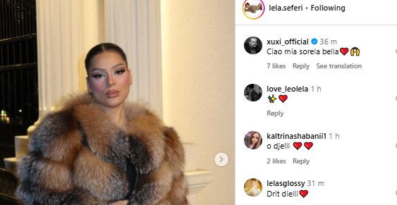 Në një nga fotot e fundit që ajo publikoi, ndër komentet e shumta ra në sy ai i ish-banorës së “Big Brother”, Xuxi, e cila i shkroi: “Ciao mia sorela bella ❤️🙌”.