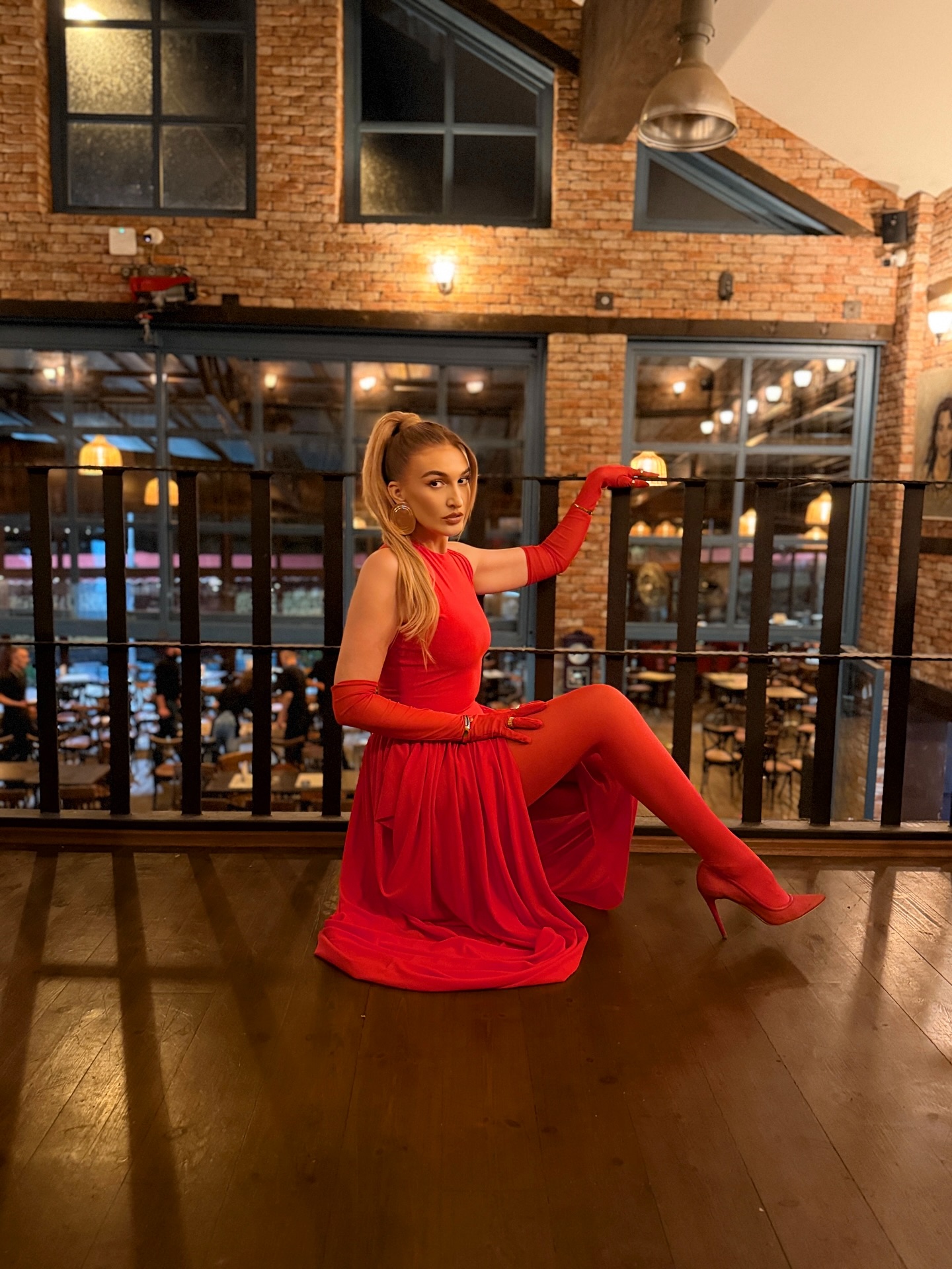 E veshur tërësisht në të kuqe, nga fustani, dorezat deri te takat, Yllka ka reflektuar stil, vetëbesim dhe hijeshi.