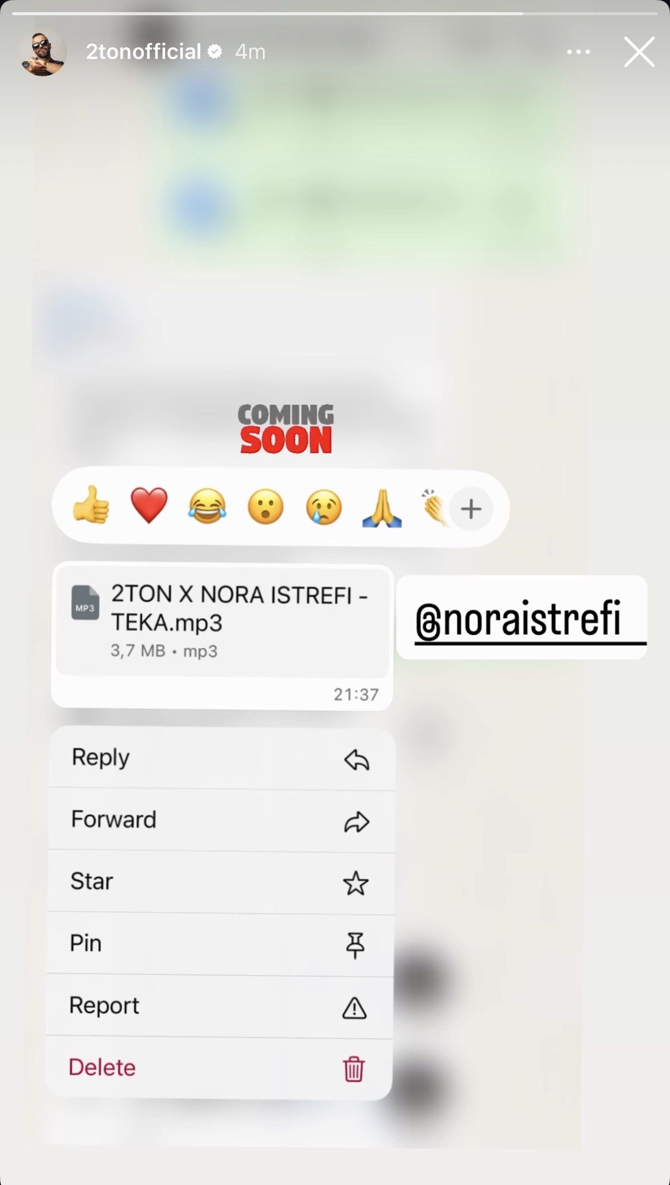 Lajmi u bë i ditur drejtpërdrejt nga vetë 2TON përmes rrjeteve sociale, duke ndarë një screenshot që zbulon këngën.