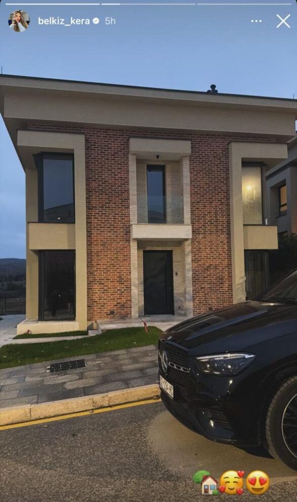Belkiz përdori emoji-t e një shtëpie, një puthjeje dhe zemre, duke konfirmuar entuziazmin e tyre për shtëpinë e re.
