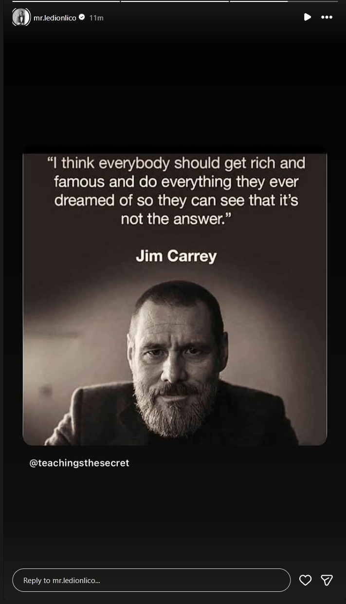 “Unë mendoj se të gjithë duhet të bëhen të pasur dhe të famshëm dhe të bëjnë gjithçka që kanë ëndërruar, në mënyrë që të shohin se kjo nuk është përgjigjja,” shkruhet në postimin e Ledionit.