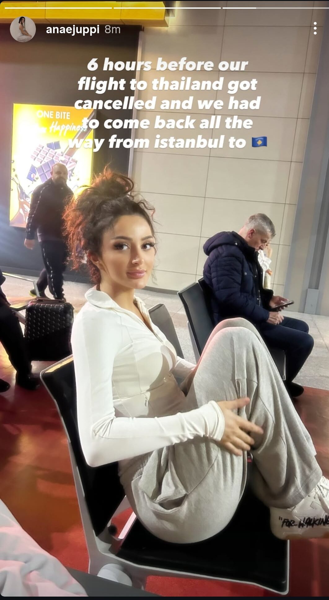 ”6 orë para fluturimit tonë për në Tajlandë, u anulua dhe na u desh të kthehemi gjithë atë rrugë nga Stambolli në Kosovë”, – ka shkruar Ana.
