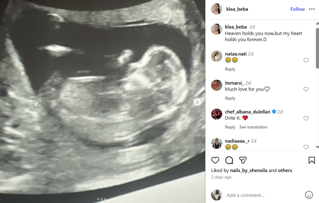 Përmes rrjeteve sociale, Klea ka njoftuar se ka humbur fëmijën.