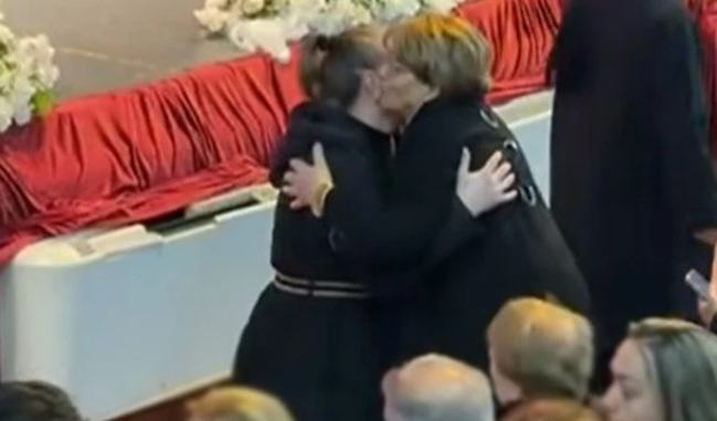 E rrethuar nga miq, kolegë dhe dashamirës të muzikës, ajo i dhuroi përqafime të ngrohta çdo të pranishmi që iu afrua për t’i shprehur dhimbjen dhe ngushëllimet.