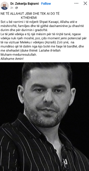 Në postimin e tij, pasi u lut për shpirtin e artistit duke shkruar “Sot u bë varrimi i të ndjerit Shpat Kasapi, Allahu atë e mëshiroftë, familjes dhe të gjithë dashamirëve ju dhashtë durim dhe për durimin i gradoftë”, ai theksoi realitetin e hidhur të vdekjes.