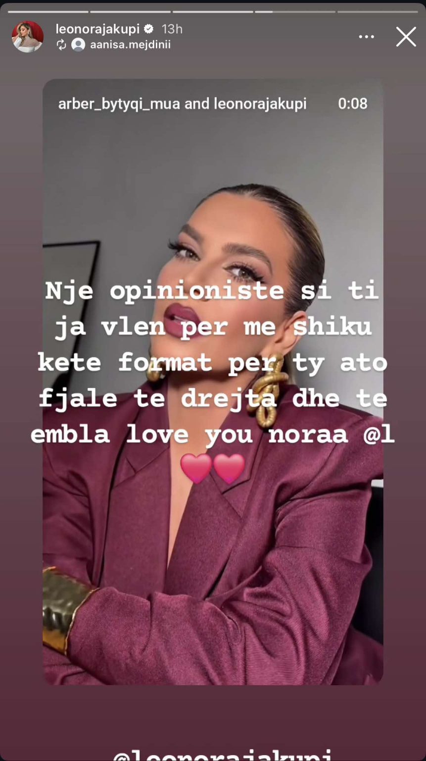 Grimeri Arber Bytyqi, me të cilin Leonora po bashkëpunon gjatë gjithë këtij edicioni, ka ndarë në Instagram disa fjalë mbështetëse për të, shkruan “Kosovarja”.