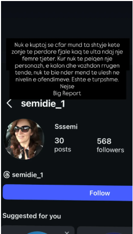 Në një postim në “Instastory”, Kiara ka publikuar emrin dhe foton e profilit të një zonje, duke shprehur habinë se si dikush mund të përdorë fjalë të ulëta ndaj një gruaje tjetër.