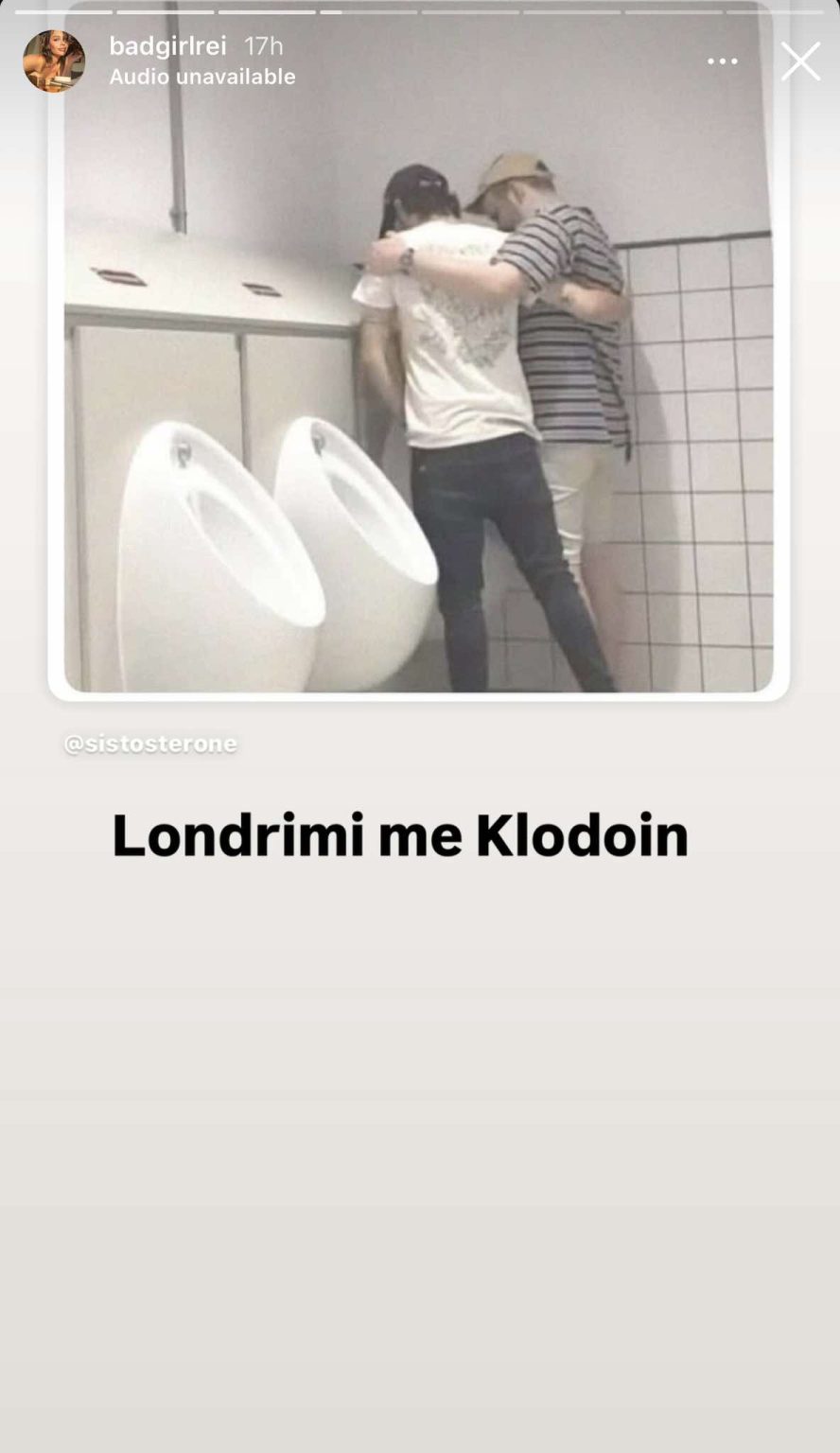 Së fundmi, ajo ka ironizuar dy banorët, Klodin dhe Londrimin, duke ndarë një foto që tregon dy djemtë duke përdorur të njëjtën guackë, shkruan “Kosovarja”.