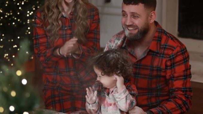 Çifti dhe vogëlushja Luna Mari shfaqen të veshur me pizhame me kuadrata të kuqe e të zeza, duke përcjellë gjithë atmosferën e ngrohtë festive.