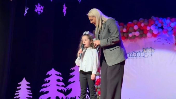 Ajo ka performuar në skenën e shkollës, bashkë me mbesën e saj Emën, në kuadër të programit festiv të fundvitit.