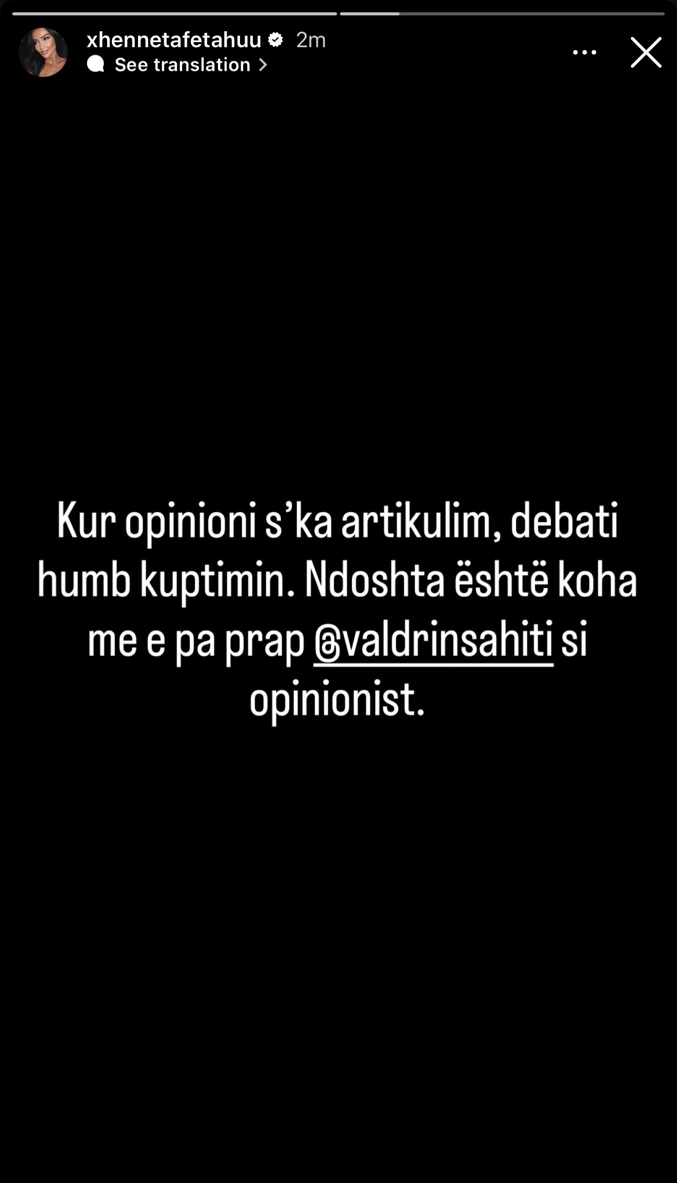 “Ndoshta është koha me e pa prap @valdrinsahiti si opinionist,” përfundon ajo.