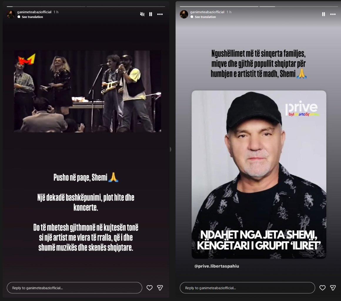 Mesazhet e dhimbjes kanë qenë të shumta, por një reagim tejet emocional ka ardhur nga kolegia e tij shumëvjeçare, Ganimete Abazi. Këngëtarja ka zgjedhur të kujtojë mikun e saj duke u kthyer pas në kohë, në vitet e tyre të arta të bashkëpunimit.