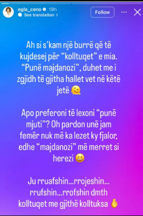 Megjithatë, goditjen finale e rezervoi për në fund. “Ju rrofshin kolltuqet me gjithë kolltuksa,” shkroi Egla, një mesazh që duket se shigjeton drejtpërdrejt çiftin Ejlli-Tito dhe pozicionet e tyre televizive, duke i zhvlerësuar plotësisht.