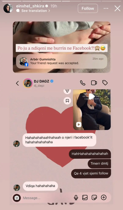 Në një postim të fundit në Instagram Story, Einxhel ka ndarë një bisedë private me Dagzin, duke zbuluar se ata sapo kanë pranuar kërkesën për shoqëri në rrjetin social.