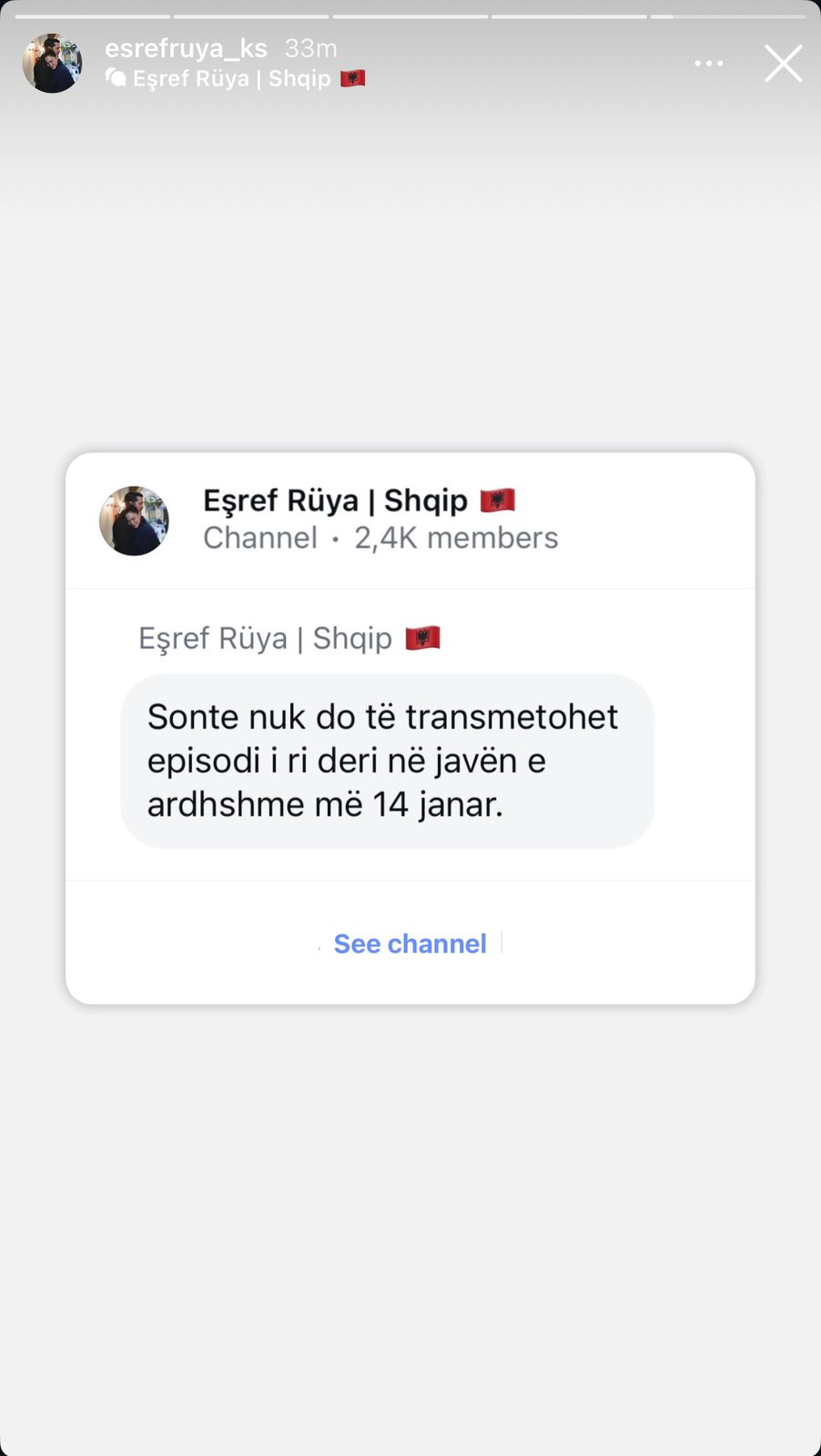 Përmes një njoftimi zyrtar në rrjetet sociale, është bërë e ditur se episodi i radhës nuk do të shfaqet sonte sipas planifikimit të rregullt.