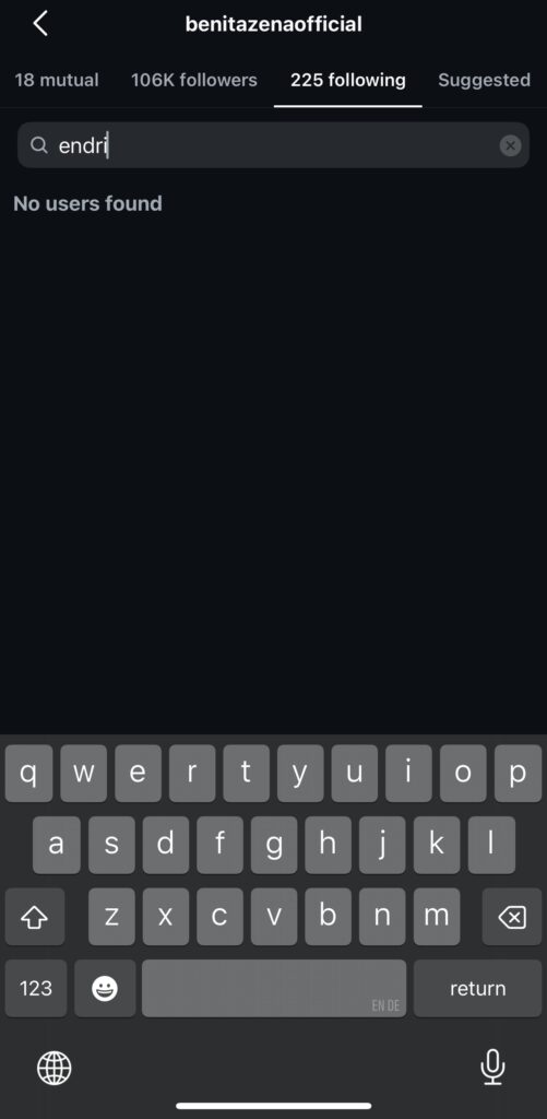 Megjithatë, një detaj i rëndësishëm nuk ka kaluar pa u vënë re. Benita dhe Endri nuk e ndjekin njëri-tjetrin në Instagram, çka ka shtuar dyshimet për lidhjen e tyre.