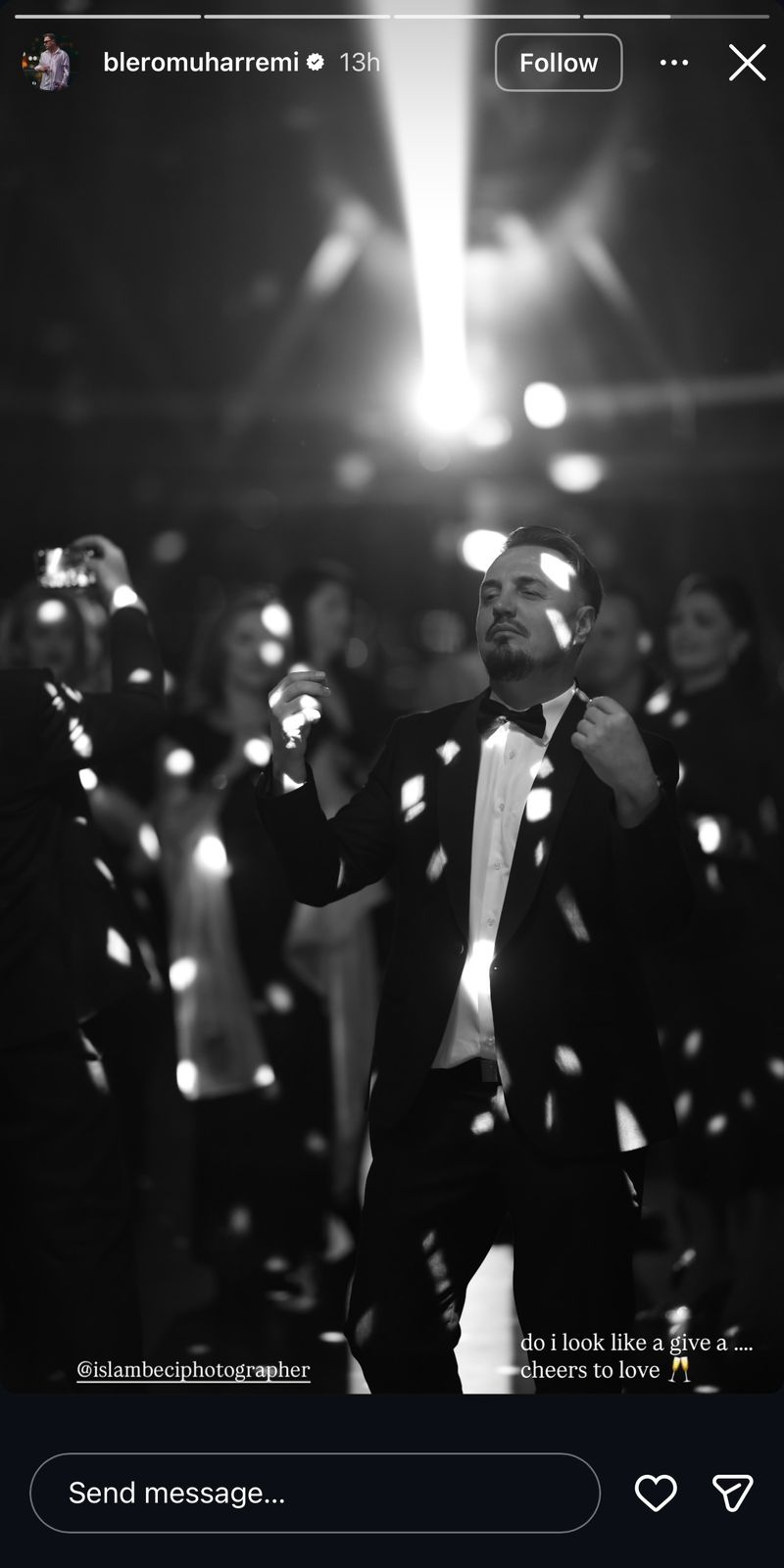 Ai publikoi një foto nga momenti i kërcimit në dasmë, duke e shoqëruar me mbishkrimin: “A ju duket sikur më… gëzuar për dashurinë!” – një mesazh i qartë se zhurma virtuale nuk e shqetëson aspak.