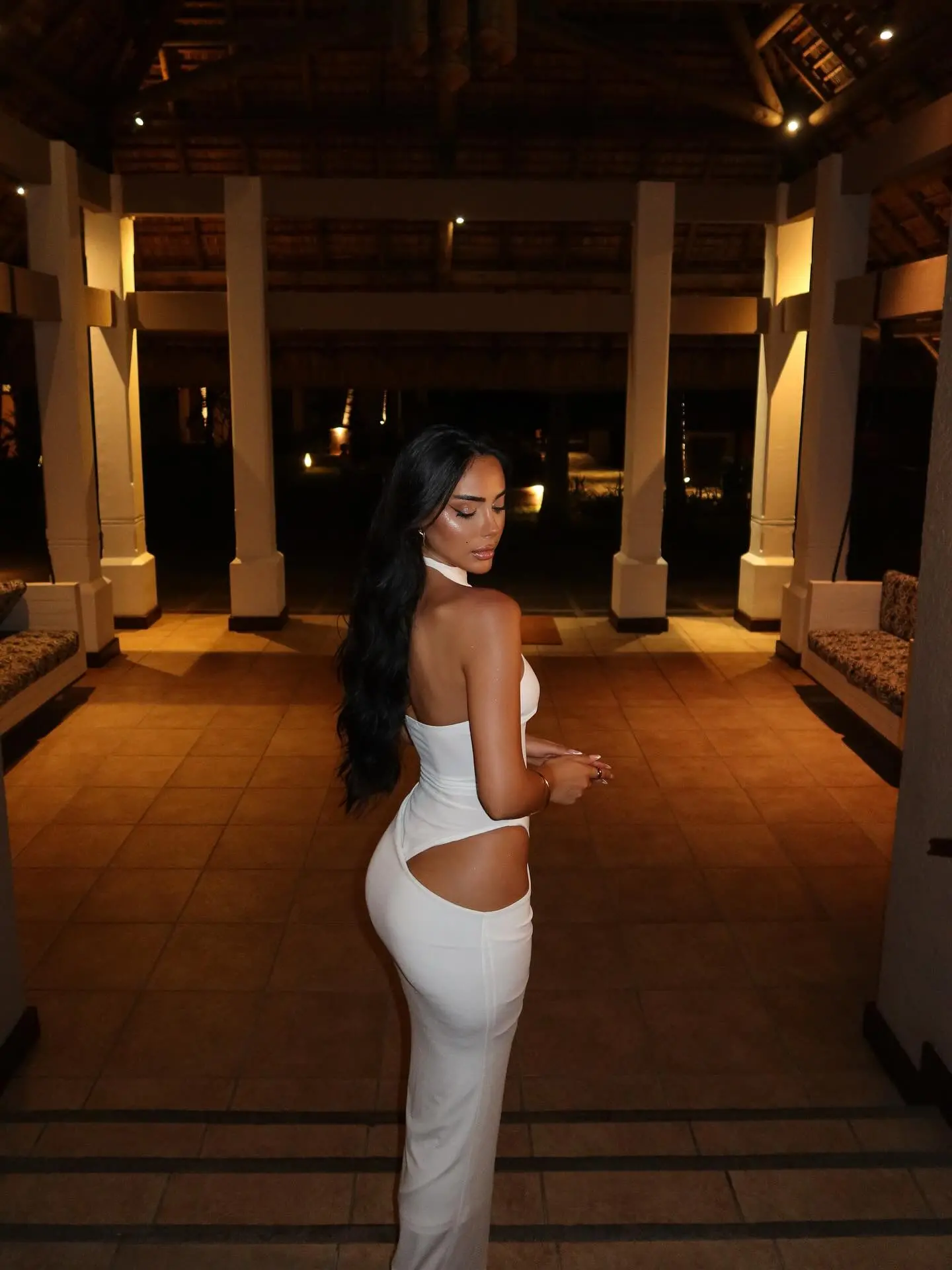 E veshur me një fustan elegant të bardhë nga Fashionnova, ajo shfaqet me një pamje që ‘flet’ më shumë se fjalët.