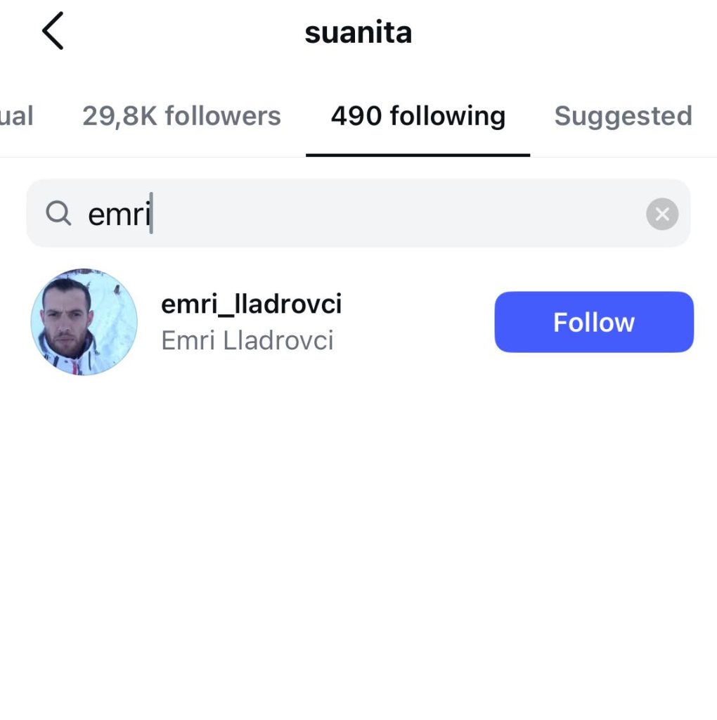 Suanita dhe ish i fejuari i saj ende ndjekin njëri-tjetrin në rrjete sociale, duke shtuar kureshtjen e publikut.