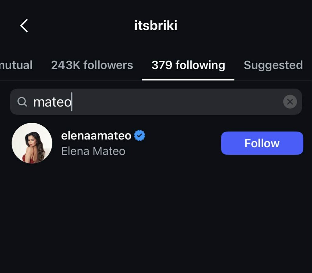 Pavarësisht se videot e tyre po bëhen virale në çdo cep të rrjeteve sociale, Brikena vazhdon të mbajë “murin” lart, duke mohuar çdo pëlqim për Mateon. Por, detaji që ka rënë në syrin e ndjekësve është jashtë shtëpisë: dyshja nuk ndiqen në rrjetet sociale.