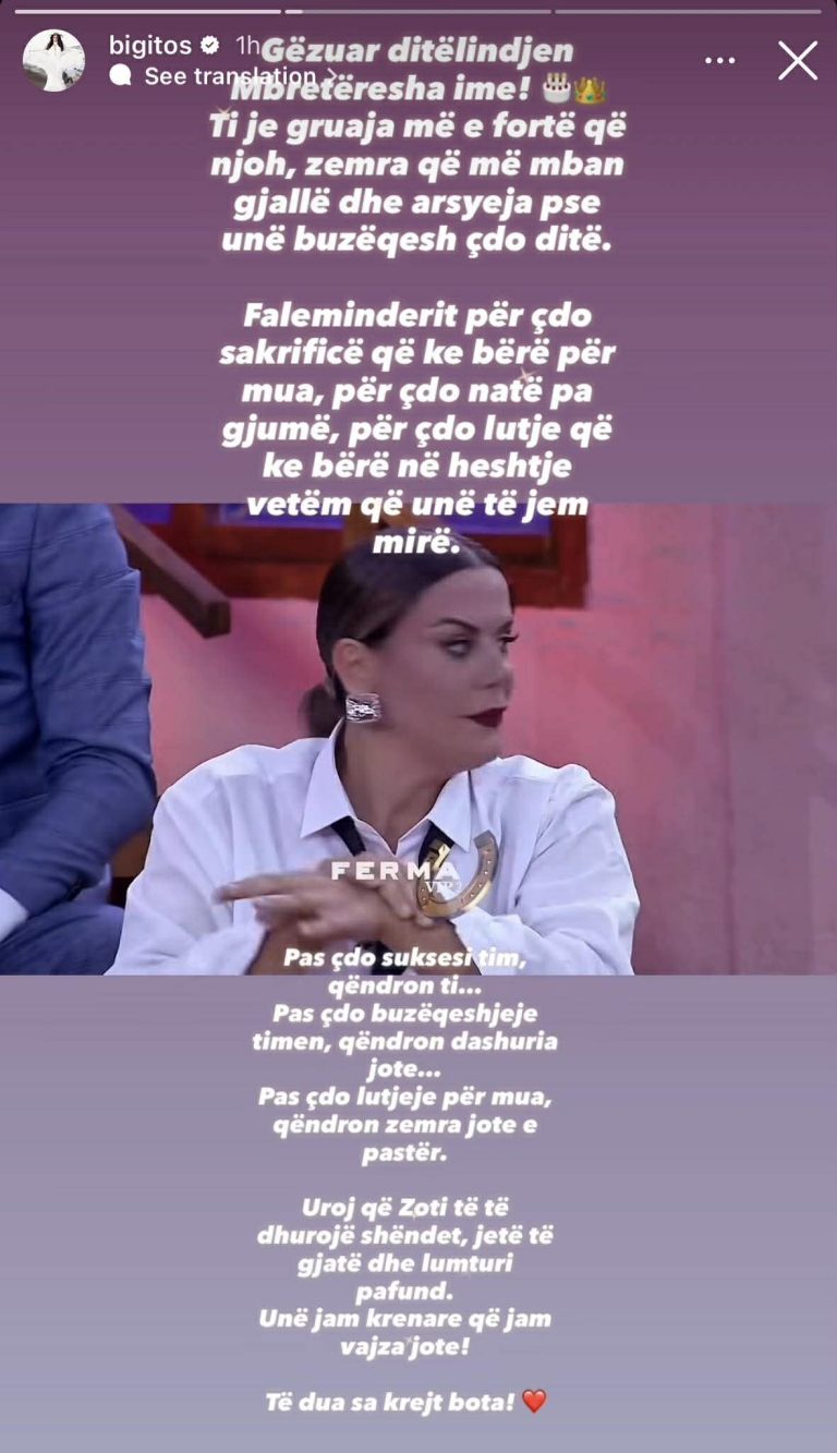 Këngëtarja Big Mama ka ndarë një urim të gjatë dhe mjaft emocionues për nënën e saj me rastin e ditëlindjes.