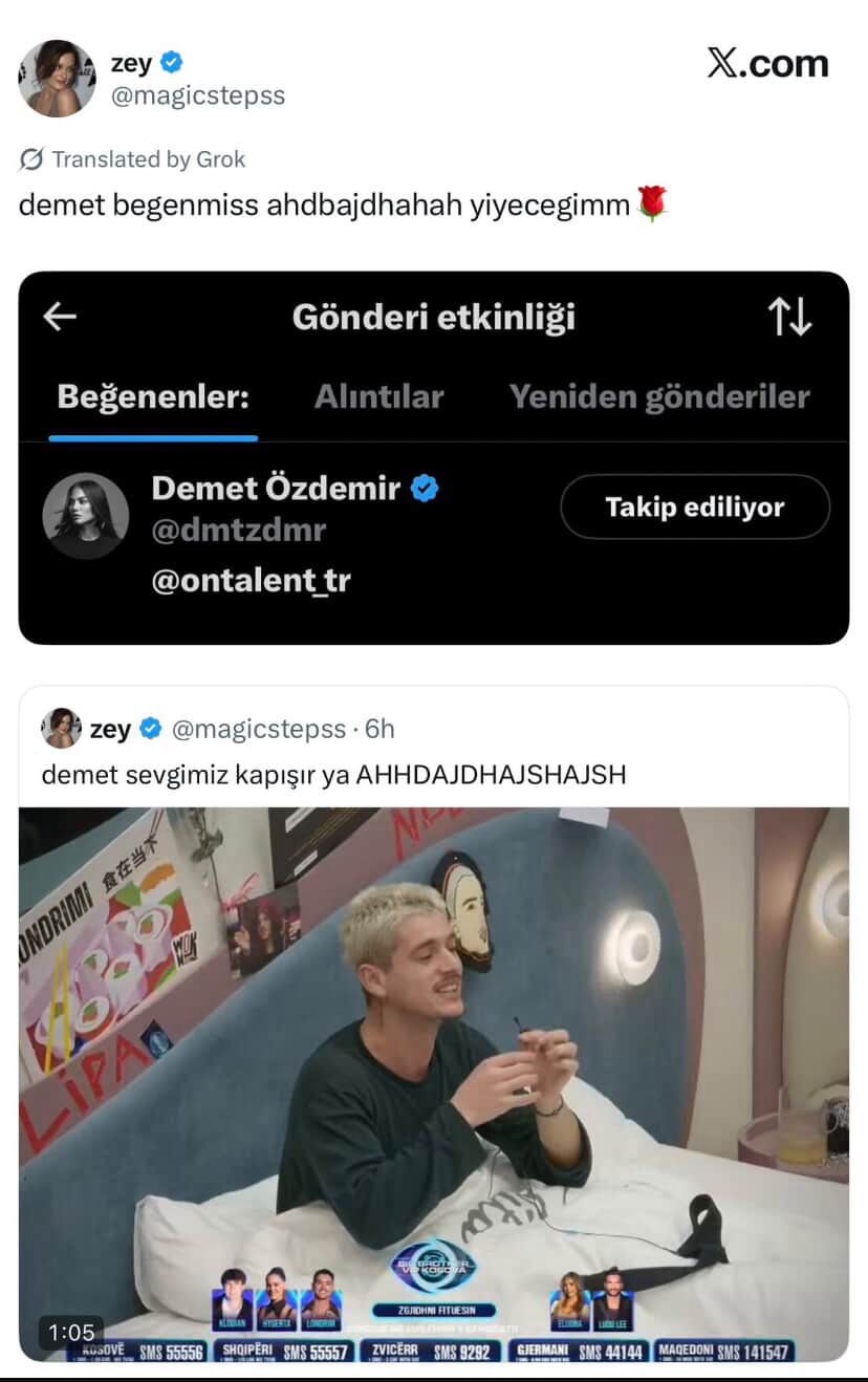 Nga llogaria e saj zyrtare dhe e verifikuar në X, Demet Özdemir i ka bërë “Like” (pëlqim) njërit prej postimeve ku Londrimi i shpreh dashurinë, duke treguar se e ka parë dhe e ka vlerësuar këtë dedikim.