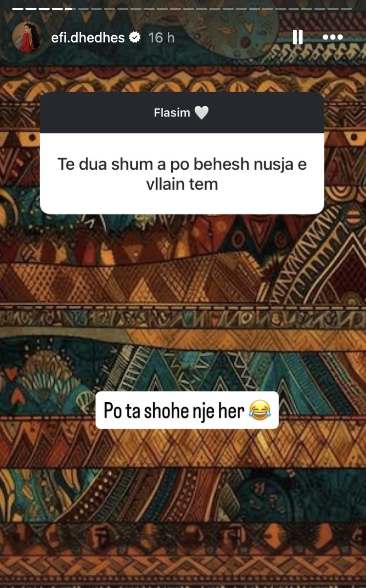 Kjo përgjigje ka shkaktuar me siguri shumë të qeshura në rrjet, duke treguar edhe njëherë se Efi mbetet një personazh mjaft i afërt dhe i hapur me fansat e saj! /Prive By Liberta Spahiu