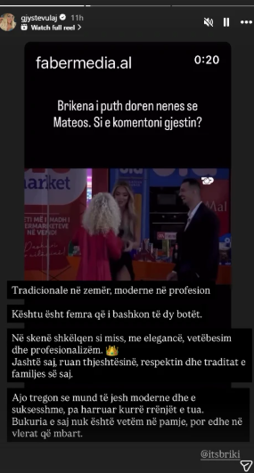 Mes tjerash theksoi: “Ajo tregon se mund të jesh moderne dhe e suksesshme, pa harruar kurrë rrënjët e tua. Bukuria e saj nuk është vetëm në pamje, por edhe në vlerat që mbart”.