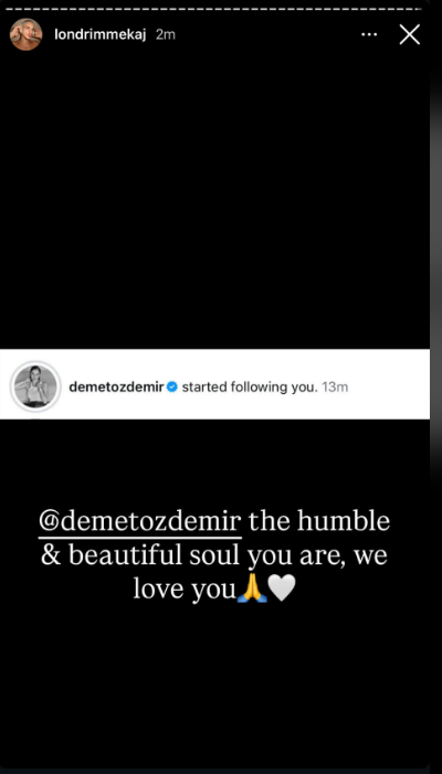 Një zhvillim ka trazuar rrjetin në llogarinë zyrtare të Londrimit, ku shihet se aktorja turke Demet Özdemir i ka bërë “follow” atij.