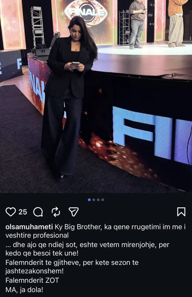 “Ky Big Brother ka qenë rrugëtimi im më i vështirë profesional… dhe ajo që ndiej sot është vetëm mirënjohje për këdo që besoi tek unë.