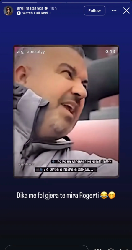 “Dika me fol gjera te mira Rogerti 😂🤭”, – ka shkruar ajo, duke lënë të kuptohet se i ka ardhur mirë për fjalët e thëna.