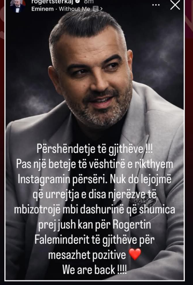 “Përshëndetje të gjithëve !!! Pas një beteje të vështirë e rikthyem Instagramin përsëri. Nuk do lejojmë që urrejtja e disa njerëzve të mbizotërojë mbi dashurinë që shumica prej jush kanë për Rogertin. Faleminderit të gjithëve për mesazhet pozitive. We are back !!!!”