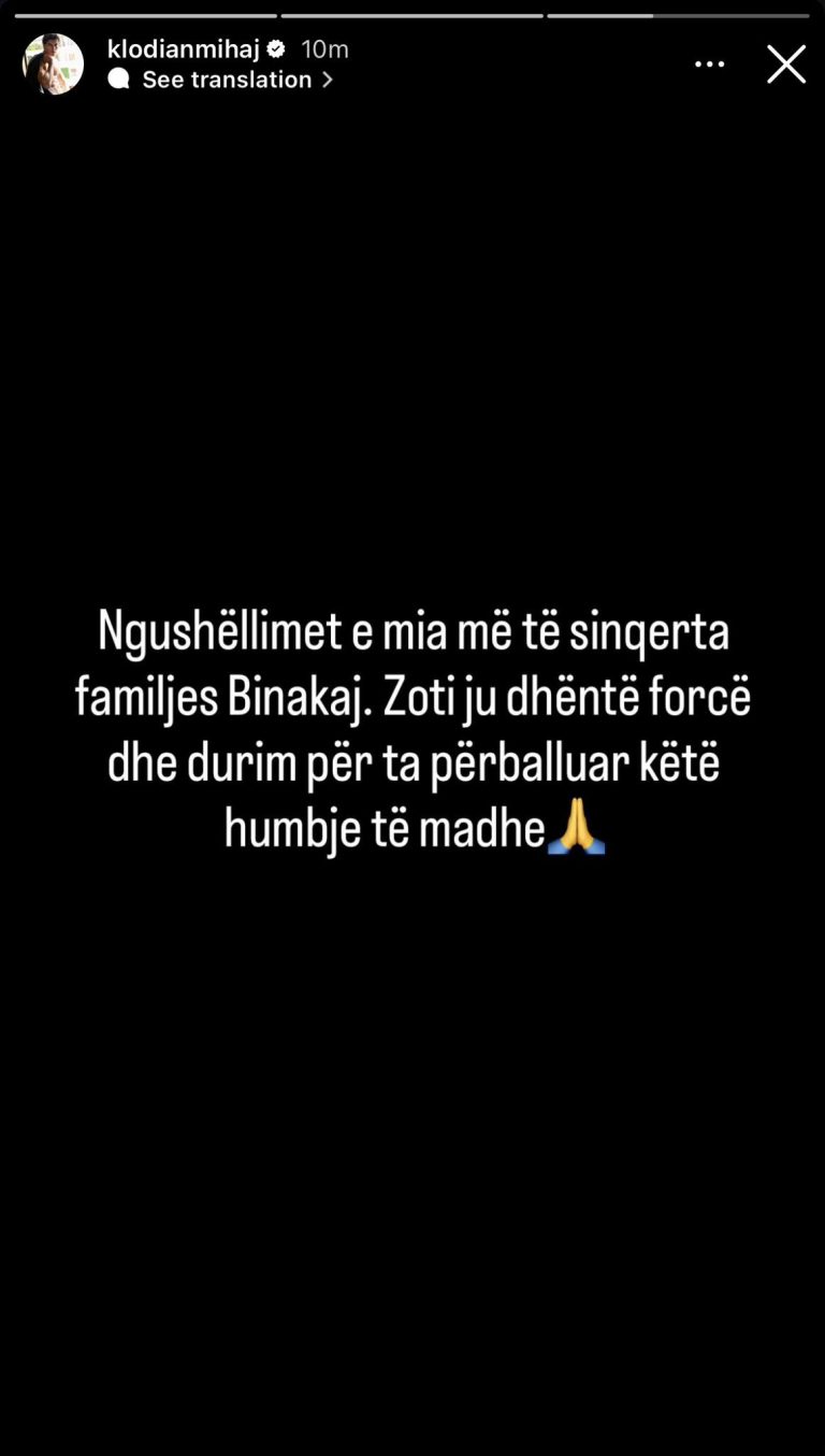 Në mesazhin e tij, Klodi ka theksuar dhimbjen për këtë ngjarje të rëndë dhe ka uruar që familja të gjejë forcë për ta përballuar humbjen. Ai ka shkruar: “Ngushëllimet e mia më të sinqerta familjes Binakaj. Zoti ju dhëntë forcë dhe durim për ta përballuar këtë humbje të madhe.”