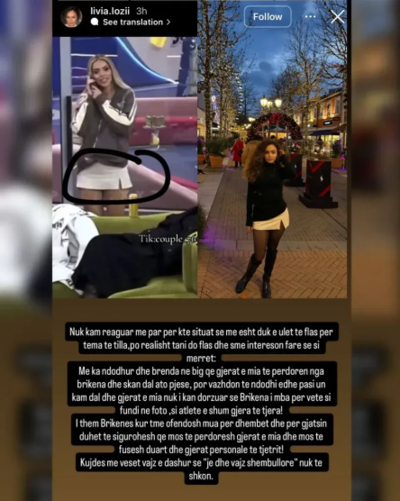 Përmes një postimi në Instastory, Livia ka publikuar një foto krahasuese ku shihet Brikena brenda shtëpisë duke veshur një fund të bardhë, i cili sipas Livias, është i saji.