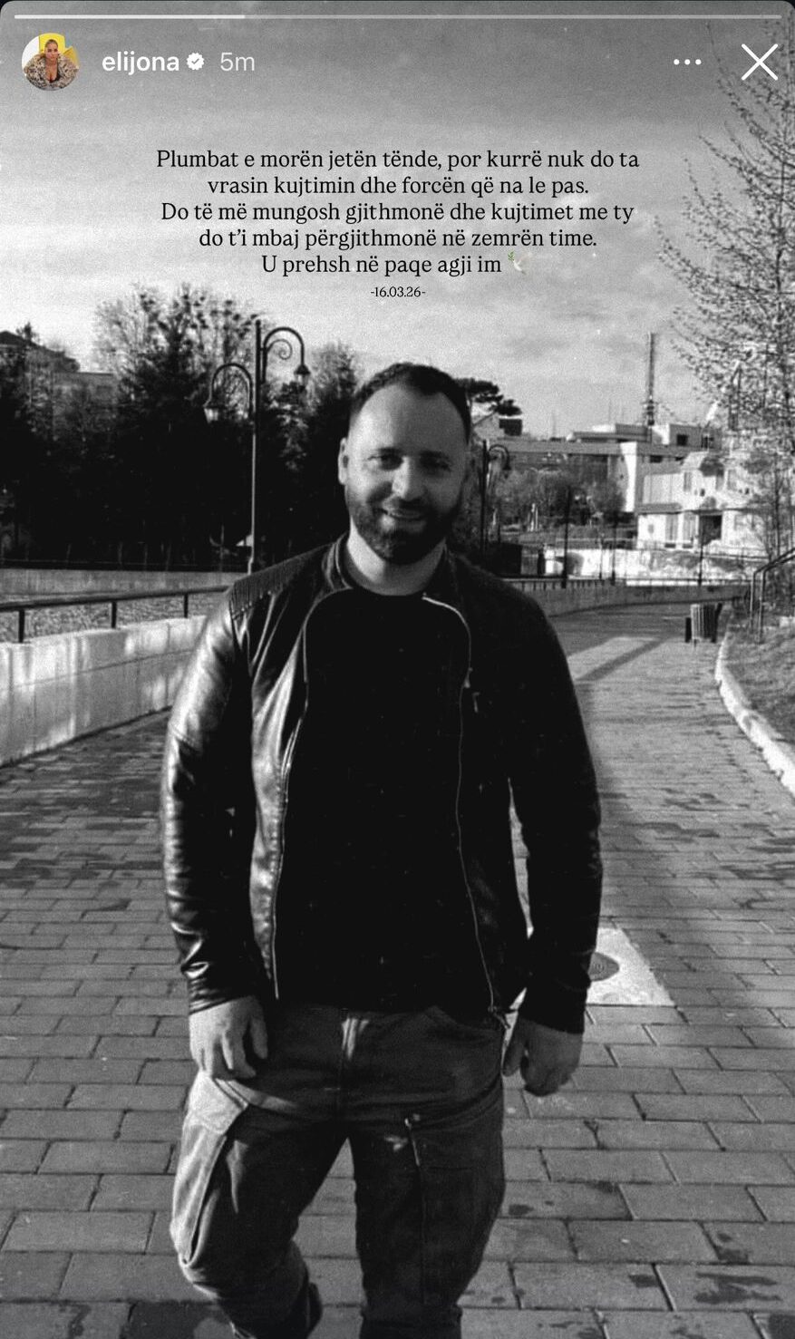 Postimi mban gjithashtu datën e ngjarjes tragjike, 16.03.2026, një ditë që i ka sjellë një zbrazëti të madhe familjes së saj.