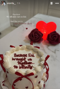 Mbishkrimi në tortë ishte“Sepse Bajrami na bashkoi… Deri në pafundësi”.